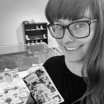 Al Olson (she/they) (Layout Designer) has an MFA in poetry from the University of North Carolina Wilmington. They enjoy making zines including, Women in Horror (essays using film theory to examine how women function in horror movies), Pickle Spirit Guide (interactive with magic dill, tarot card, and stickers) and Bummer Time (two-color r